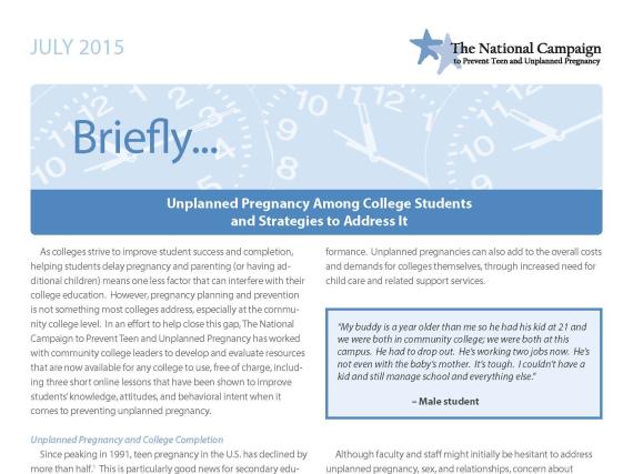 Connolly, C. (2018). Helping Students Prevent Unplanned Pregnancy At Mississippi Colleges. Washington, DC: Power to Decide, the campaign to prevent unplanned pregnancy.
